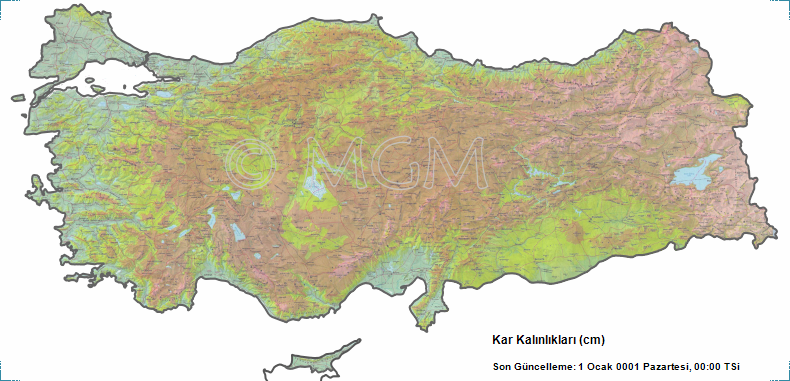 الخريطة توضح سماكة او ارتفاع الثلج في كل منطقة من تركيا